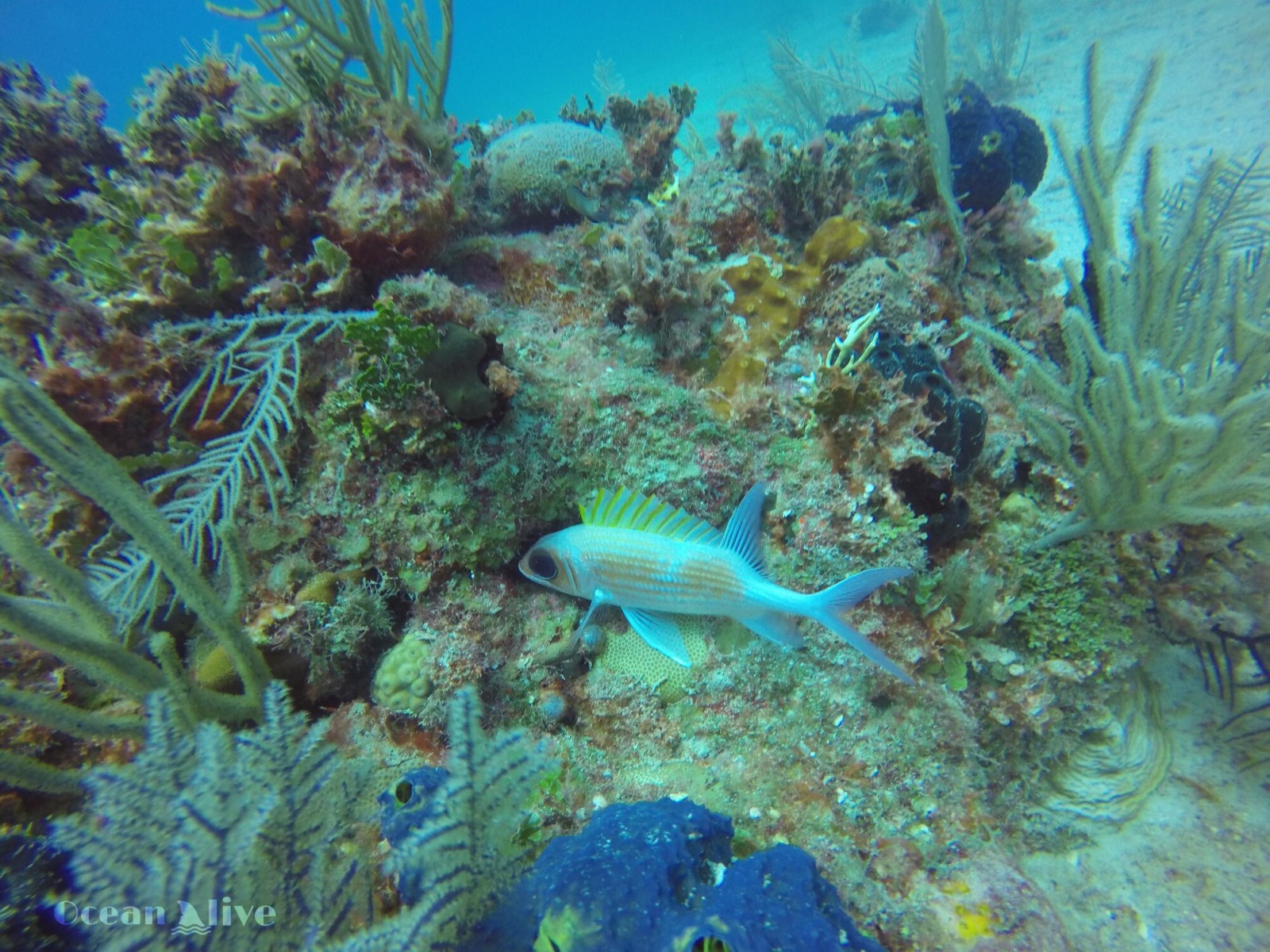 Caribean reef sharks, a turtle, large groupers and a special guest
